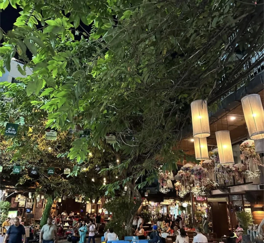 Les marchés de nuit (« Night Markets ») sont une institution culturelle en Thaïlande. Le plus populaire et le plus tendance actuellement est le Jodd Fairs (situé dans le quartier Rama 9). Plus propre et organisé que les anciens marchés, il attire une foule jeune et branchée. On y vient pour chiner des vêtements vintage, écouter des groupes de musique live, mais surtout pour manger. C’est ici que tu trouveras la fameuse « Montagne de côtes de porc » (Leng Saap), un plat spectaculaire composé d’os de porc empilés recouverts de piments verts et d’une sauce acide épicée. L’ambiance y est festive, conviviale et très photogénique.